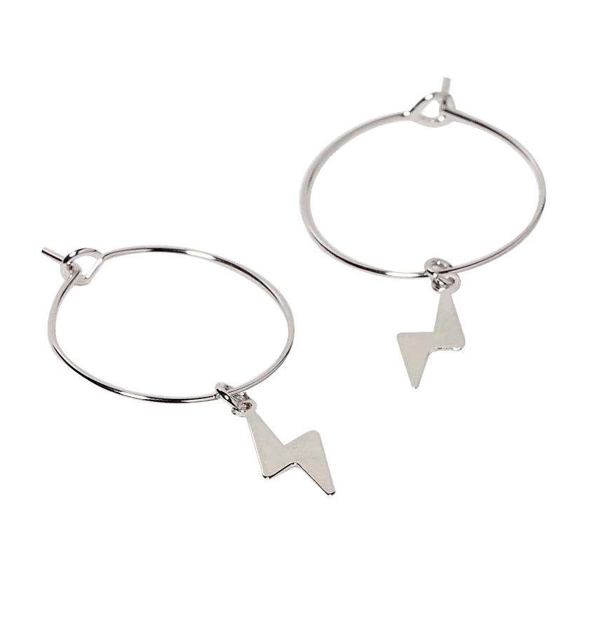 Plug Lightning Bolt Silver Hoop Earrings $15.99