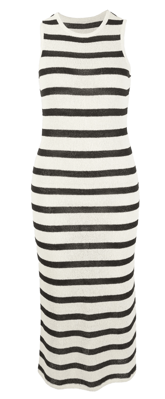Women's Knitted Stripe Tank Dress in Egret/Black $39